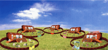 動物の種類別でトレーラーハウスが建ち並び、ふれあうことができます。トレーラーハウスの廻りには木製の柵を取りつけ動物が逃げることなくふれあえます。室内は宿舎を兼ねたふれあいコーナーになっていますので、天候の悪い日にも対応!自動販売機を設け、ご両親が休憩しながら室内・室外で遊ぶお子様の姿を確認する事が出来ます。